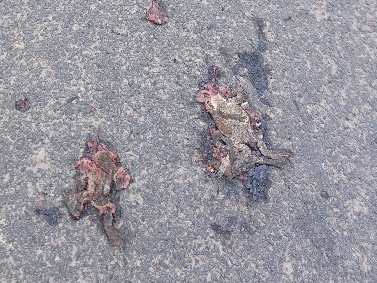 Drei Wochen lang standen wir jeden Abend von 19 bis 23 Uhr an der Strecke, mit Eimern und Stirnlampen, und trugen Tiere sicher über die Straße. Rund 700 Amphibien konnten so gerettet werden.